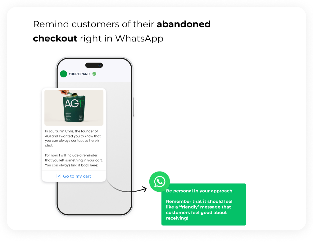 Showcase your products or services directly on WhatsApp, easy to browse, simple to buy.